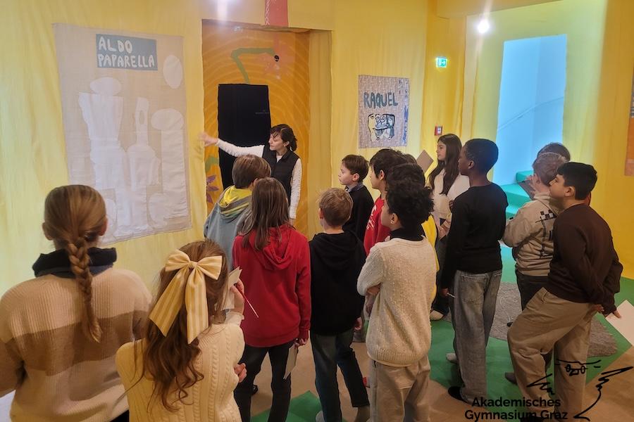Caro Feistritzer, die den Rundgang mit uns durchführte, war begeistert von dem großen Interesse, der Kommunikationsfreude und der Offenheit der Schüler:innen.