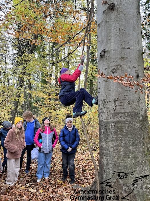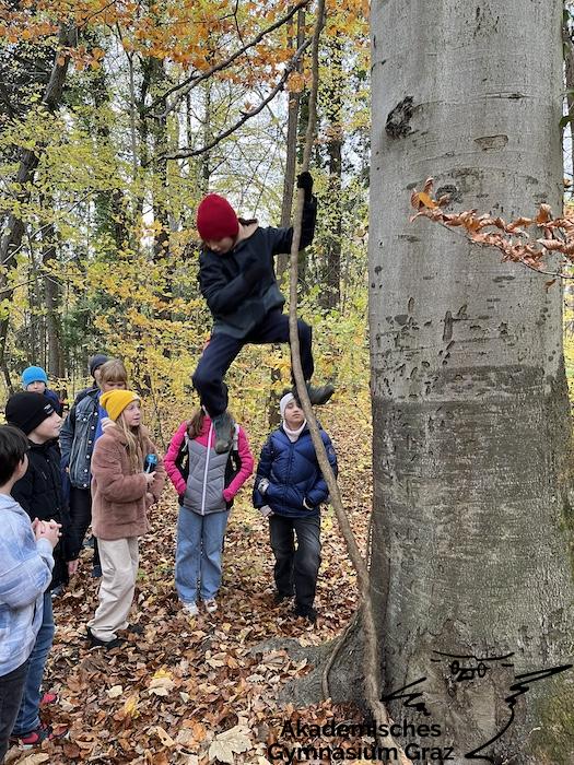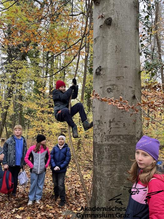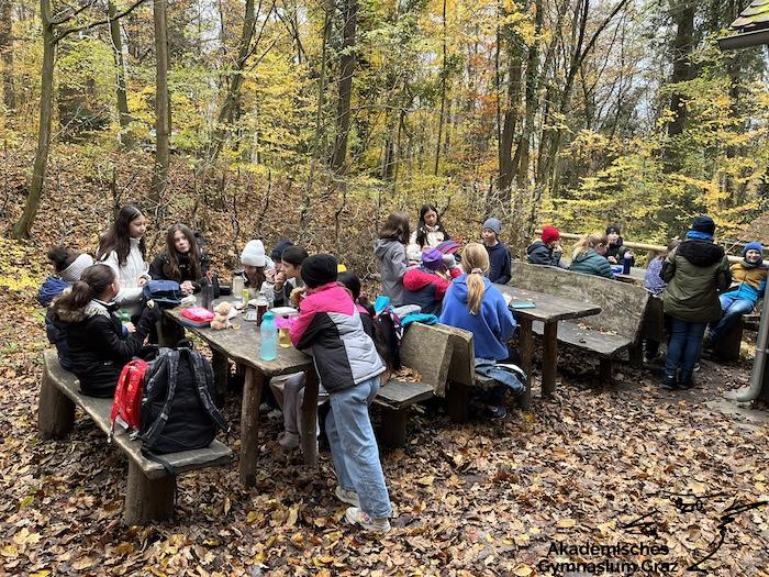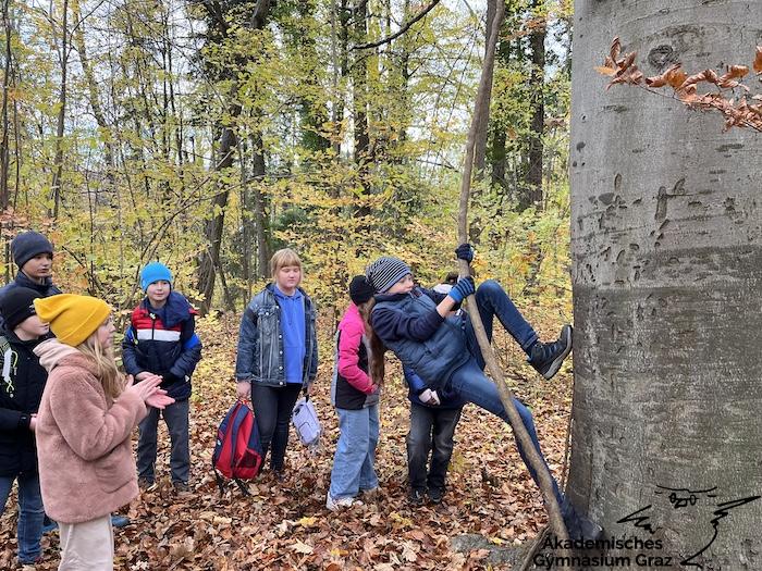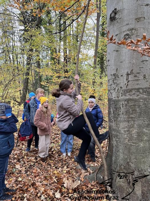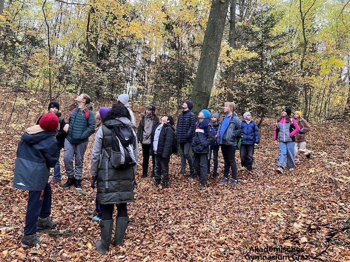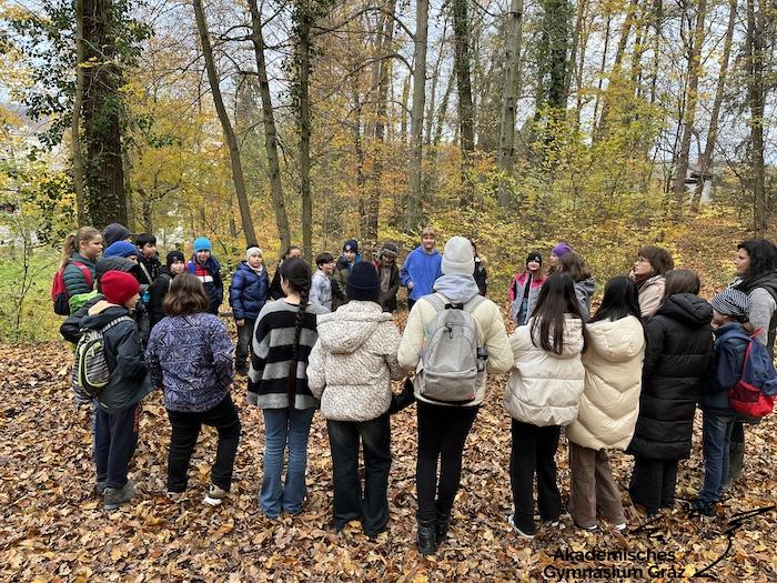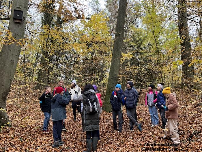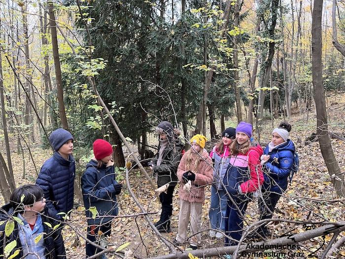 Am 17.11.23 besuchte die 2c-Klasse im Rahmen des Biologie-Unterrichtes die Waldschule im Leechwald. Das waldpädagogische Programm zielte darauf ab, dass die Kinder den Wald mit allen Sinnen erforschen konnten. Wir konnten an Bäumen und Kräutern riechen, den Geräuschen der Natur lauschen und den Wald mit den Fingern erkunden. Das Kennenlernen der vielseitigen Aufgaben des Waldes stand dabei im Mittelpunkt sowie der Weg vom Samen über den Baum bis hin zum Holzprodukt. Es machte großen Spaß, gemeinsam mit der Klasse lustige Teamspiele im Wald zu machen, dadurch wurde nicht nur das Miteinander in der Gruppe gestärkt, sondern wir machten auch positive Erfahrungen mit der Natur, die wir in den Schulalltag mitnehmen konnten.