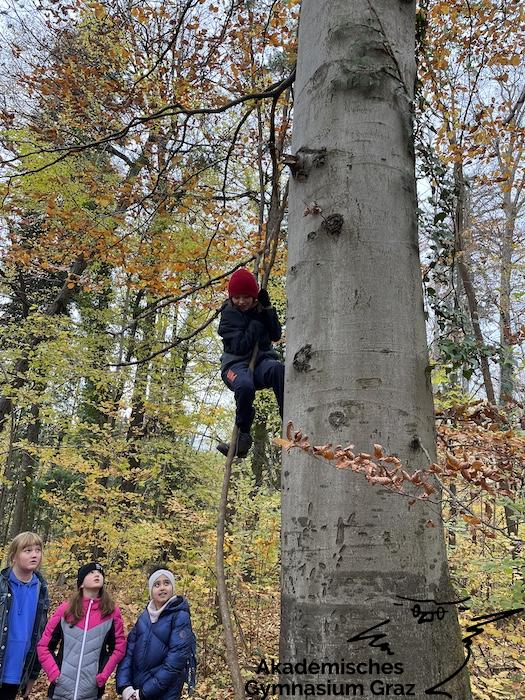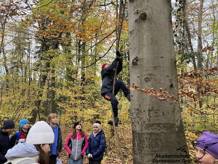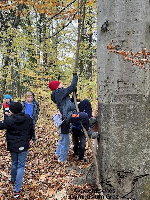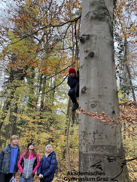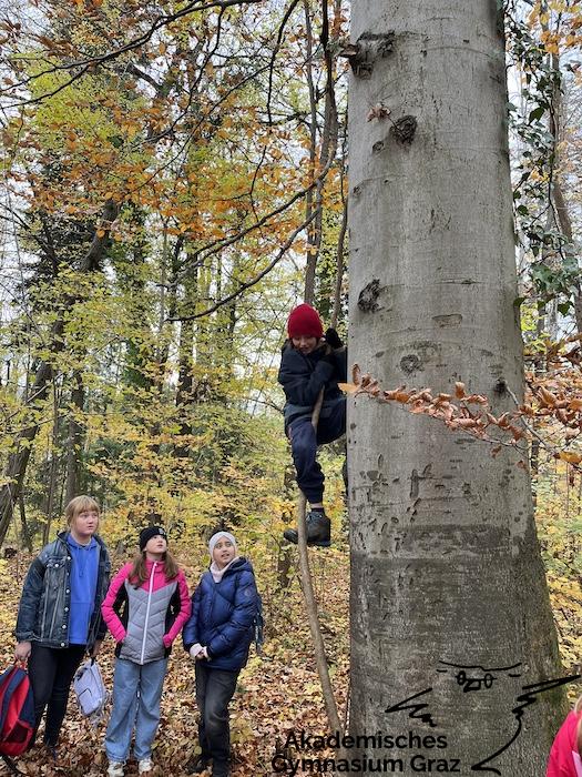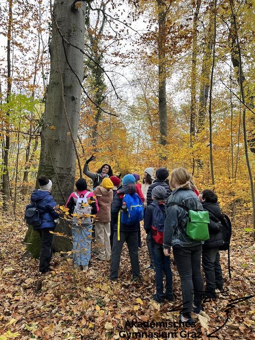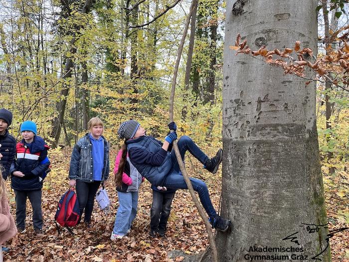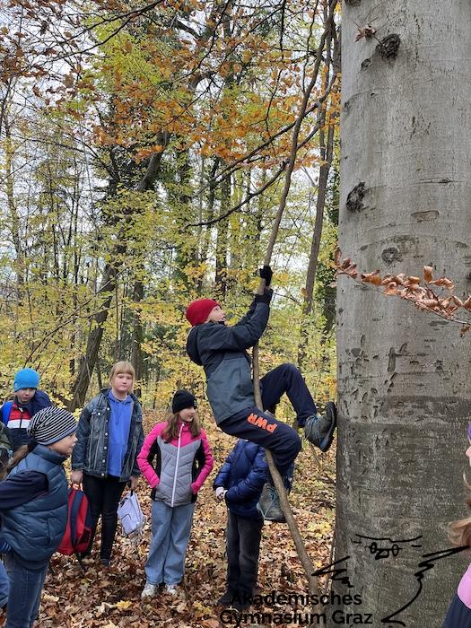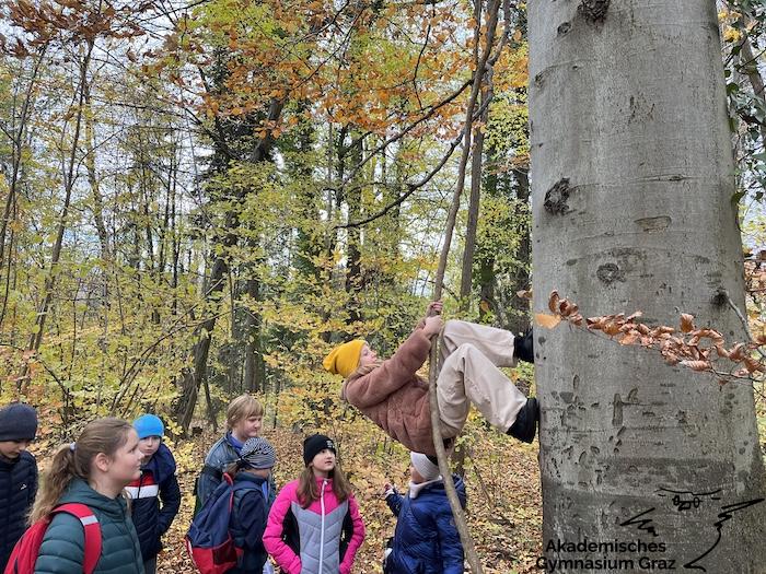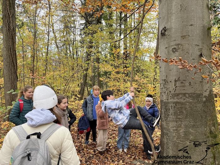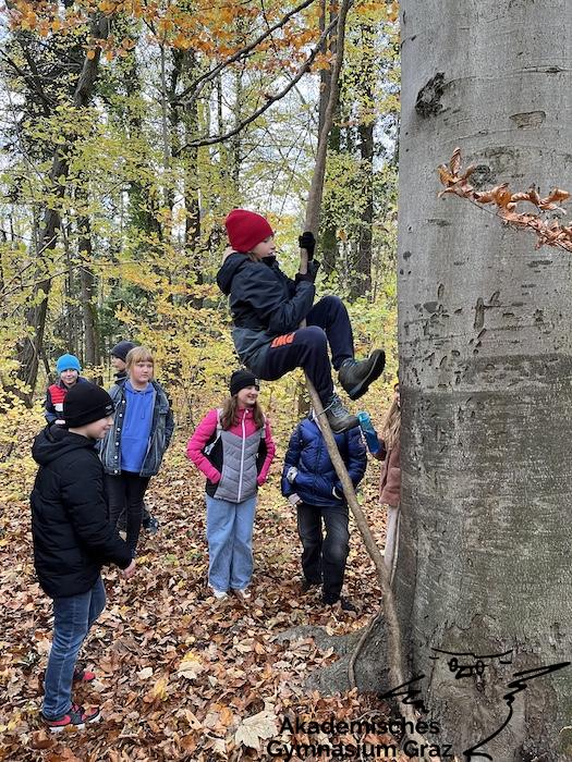 Am 17.11.23 besuchte die 2c-Klasse im Rahmen des Biologie-Unterrichtes die Waldschule im Leechwald. Das waldpädagogische Programm zielte darauf ab, dass die Kinder den Wald mit allen Sinnen erforschen konnten. Wir konnten an Bäumen und Kräutern riechen, den Geräuschen der Natur lauschen und den Wald mit den Fingern erkunden. Das Kennenlernen der vielseitigen Aufgaben des Waldes stand dabei im Mittelpunkt sowie der Weg vom Samen über den Baum bis hin zum Holzprodukt. Es machte großen Spaß, gemeinsam mit der Klasse lustige Teamspiele im Wald zu machen, dadurch wurde nicht nur das Miteinander in der Gruppe gestärkt, sondern wir machten auch positive Erfahrungen mit der Natur, die wir in den Schulalltag mitnehmen konnten.
