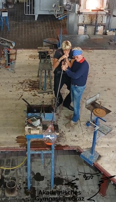 Mit dem Kurs „Glas“ konnten interessierte Schülerinnen und Schüler der Oberstufe das Glasmuseum in Bärnbach und die Produktionsstätte von mehreren Millionen Tonnen Glasprodukten am letzten Freitag vor den Herbstferien besichtigen. Dabei durften sie sogar die Technik des Glasformens mit einem Glaskünstler ausprobieren. Die Faszination für die Glasproduktion ist bei uns allen nochmals gewachsen.