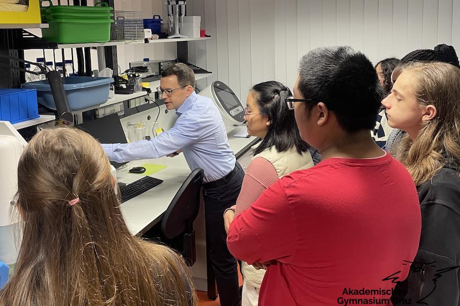 Die 5c-Klasse besuchte am Freitag, dem 10.11.2023, im Rahmen des Biologieunterrichts das Institut der Molekularbiologie auf der Universität in Graz. Die Forschungsgruppe im Bereich der Biophysik beschäftigt sich intensiv mit der Erforschung von Biomembranen und den darin enthaltenen Membranproteinen. Wir durften Frau Dr. Ariane Pessentheiner, die ein Wissenschaftskommunikationsprojekt für Kinder und Jugendliche entwickelte, besuchen und auf spielerische und experimentelle Weise unser Wissen zu den Themen „Zelle“ und „Membranproteine“ erweitern. Wir bekamen eine Laborführung sowie Einblicke in naturwissenschaftliche Studiengänge und Arbeitsbereiche im Bereich der Molekularbiologie. Anschließend wurden die SchülerInnen in das Zeichnen von Wissenschaftscomics eingeführt, an denen sie in der nächsten Woche weiterarbeiten werden. Wir freuen uns schon auf den Besuch von Frau Dr. Pessentheiner und auf die Fortsetzung unseres spannenden Projektes!