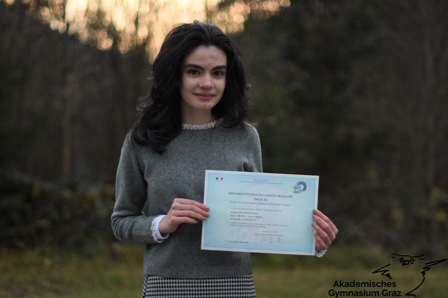 Félicitations!!! – Herzliche Gratulation an Lorraine-Leonie Kirchsteiger (5b) zum erfolgreich bestandenen DELF A2-Diplom!