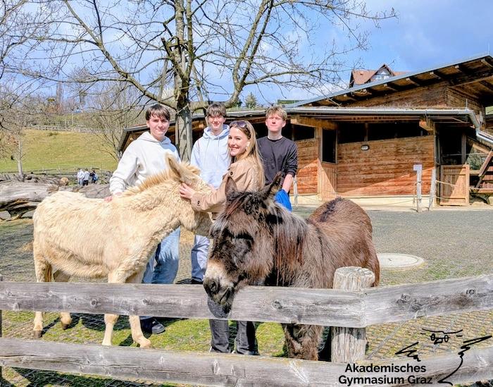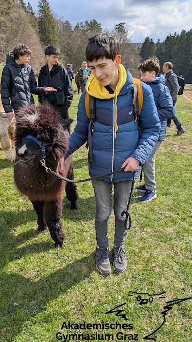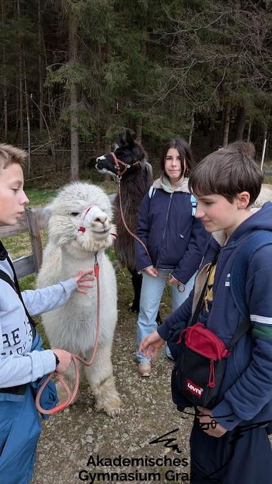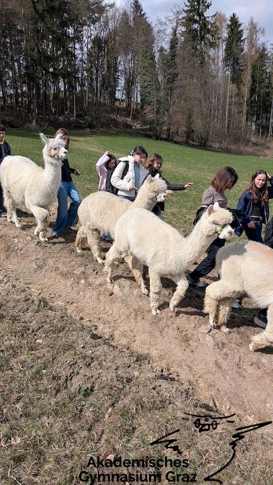 In den nächsten Tagen folgte ein dichtes Programm mit Alpakawanderung im Schöcklland, Spaß im Motorikpark Gamlitz, obligatorischem Besuch der Schokoladenmanufaktur Zotter, Besuch im Freilichtmuseum Stübing und natürlich auch dem Schnuppern in Unterrichtsstunden unserer Schule.