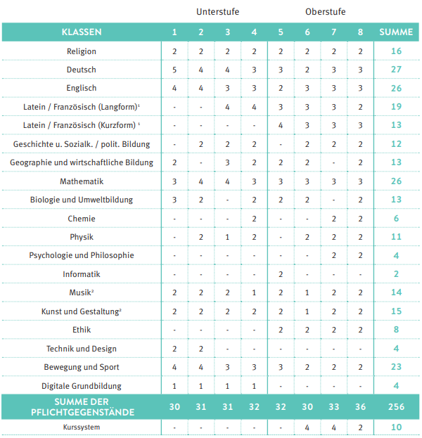 2.) Musik und Kunst und Gestalten sind ab der siebten Klasse alternative Pflichtgegenstände.