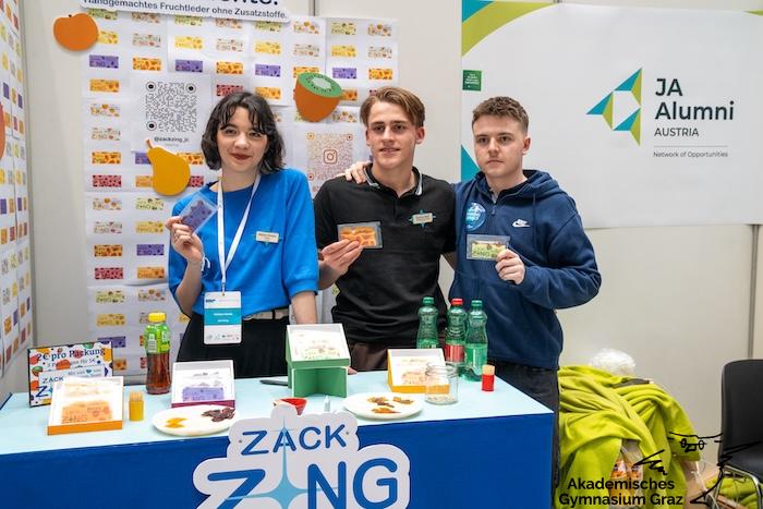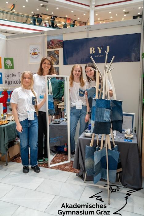 Nachdem unsere beiden Junior Companys, BYJ – Bag Your Jeans (Upcycling von Jeans zu selbst designten Taschen) und Zack Zing (Produktion von Fruchtleder) ihre Produkte im schulischen Umfeld vertrieben hatten, ging es nun darum, die beiden Unternehmen einem breiteren Publikum bekannt zu machen. Dies erfolgte im Rahmen der Junior Handelsmesse – JA Marketplace Vienna, welche von 14. – 16. März in Wien stattfand.