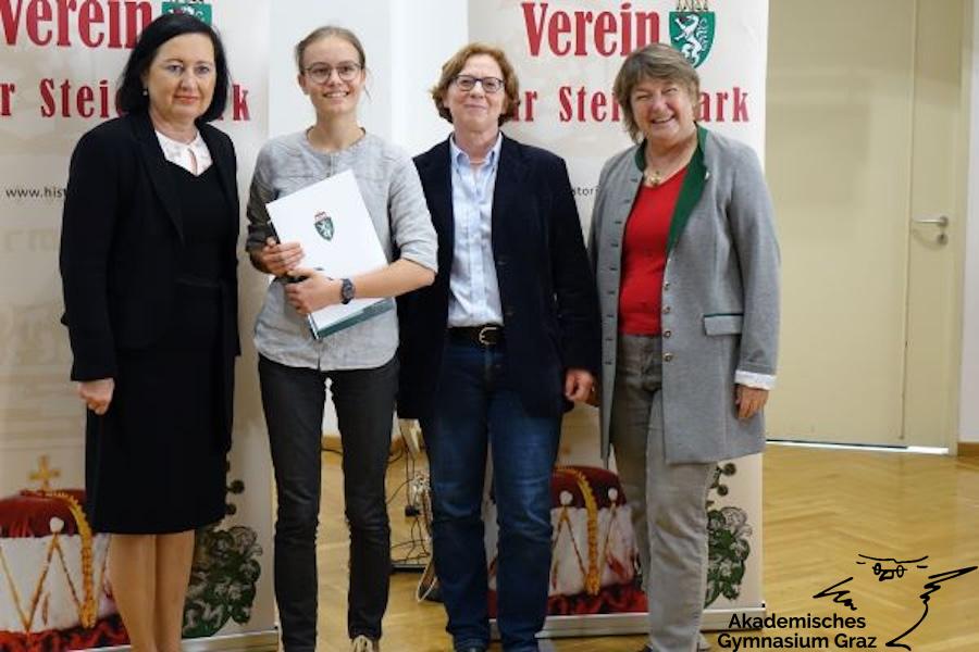 Am 29.5.2024 fand im Rahmen einer kleiner Feier im Wartingersaal des Landesarchivs die Verleihung der Wartingermedaille statt, eines Preises, der im Jahr 1815 von Josef Wartinger, dem Landesarchivar Erherzog Johanns, gestiftet wurde und seit damals an jene Schüler:innen vergeben wird, die sich um die steirische Landeskunde besonders verdient gemacht haben. Aus unserer Schule durfte Johanna Brugger (6c) heuer die begehrte Medaille entgegennehmen. Herzliche Gratulation!