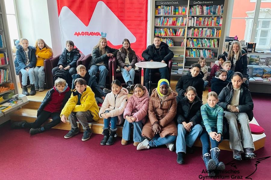 Im Jänner dürfen die 1. Klassen ein ganz besonderes Erlebnis im Deutschunterricht genießen: Noch bevor die Türen der Buchhandlung Moser für Kundinnen und Kunden öffnen, dürfen unsere Schülerinnen und Schüler eintreten und einen spannenden Blick hinter die Kulissen einer Buchhandlung werfen. Im Rahmen einer exklusiven Führung erfahren die Kinder, welche Arbeitsschritte notwendig sind, bis ein Buch im Regal landet, und begeben sich auf eine kleine Reise durch die Geschichte des Buches.